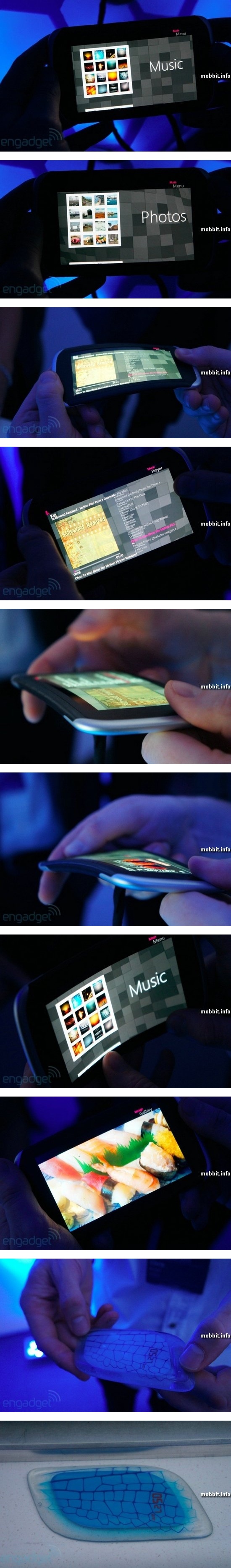 Nokia показала прототип, который, по ее словам, может считаться прообразом гибких смартфонов будущего, года эдак 2021. Устройство под названием Nokia Kinetic Device имеет 4-дюймовый дисплей, который гнется как в горизонтальной, так и в вертикальной плоскости. И это не просто изгиб ради изгиба! Если вы выгибаете дисплей по направлению к себе, то активируется функция выбора или же увеличивается картинка, которую вы просматриваете. В режиме прослушивания музыки с помощью подобного интерфейса можно перемещаться по плейлисту, а также останавливать и запускать воспроизведение. Такого мы еще не видели. Назвать использованную в устройстве технологию Nokia отказалась. Может ли это быть AMOLED-дисплеем? Решите сами – видео далее.