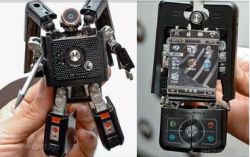Робот-трансформер на основе Motorola ROKR E6Инженеры компании Motorola изготовили интересное устройство. Оно представляет собой робота-трансформера, в сложенном состоянии превращающегося в телефон Motorola ROKR E6. Пока неизвестно, можно ли совершать звонки при помощи этого устройства, и заложена ли в нём вообще хоть какая-то цифровая функциональность, но по всей видимости, идея действующего телефона-трансформера вполне воплотима.