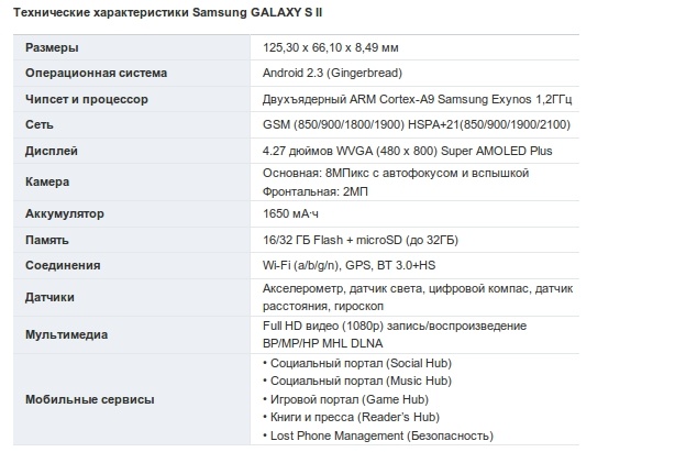 мобильных технологий. Размер Galaxy S II в толщину составляет 8,49 мм, а
