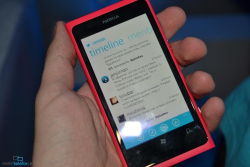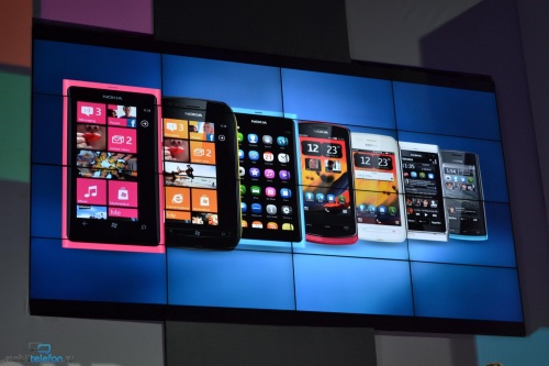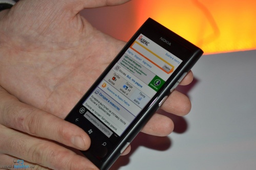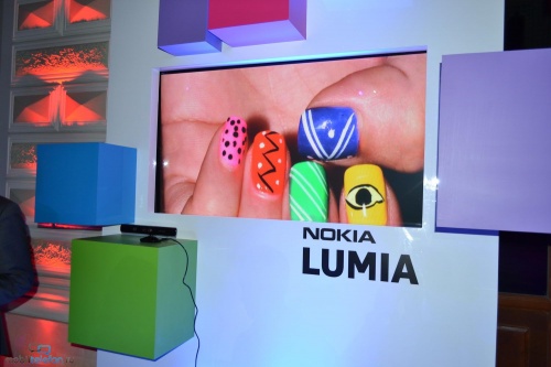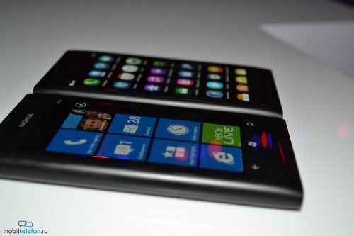 Nokia организовала несколько демо-зон, где каждый желающий мог ознакомиться с первыми Lumia. Мне удалось повертеть в руках смартфоны во всех расцветках. Кроме того, было сделано несколько сравнительных кадров новинок рядом с Nokia N9 (близнец Lumia 800) и iPhone 4S. Без демонстрационных видео тоже не обошлось: