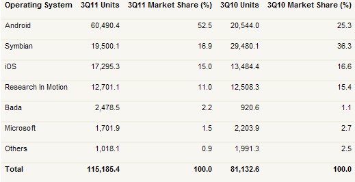 2011 года по рынку мобильных операционных систем и смартфонов. В целом, можно