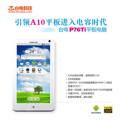 Компания Teclast выпустила свой новый Android-планшет P76Ti. Устройство предлагает 7.0-дюймовый емкостный мультитач дисплей и работает на базе процессора ARM с частотой 1.5ГГц. Новинке выделили графический чип Mali-400, 512Мб оперативной памяти DDR3, 8Гб постоянной памяти, слот MicroSD и фронтальную камеру. Планшет научили работать с Flash 10.3, поддерживать воспроизведение видео формата 2160p Super HD, выделили Wi-Fi модули и порт HDMI 1.4. Новинка находится под управлением операционной системы Android 2.3 и предлагается к покупке за 499 юаней (около 78 долларов). Источник: Teclast.com Написал: Николай Хижняк Джерело: hi-news.ru Обговорення новиниКоментариев пока никто не оставил. Станьте первым! Попередні новини