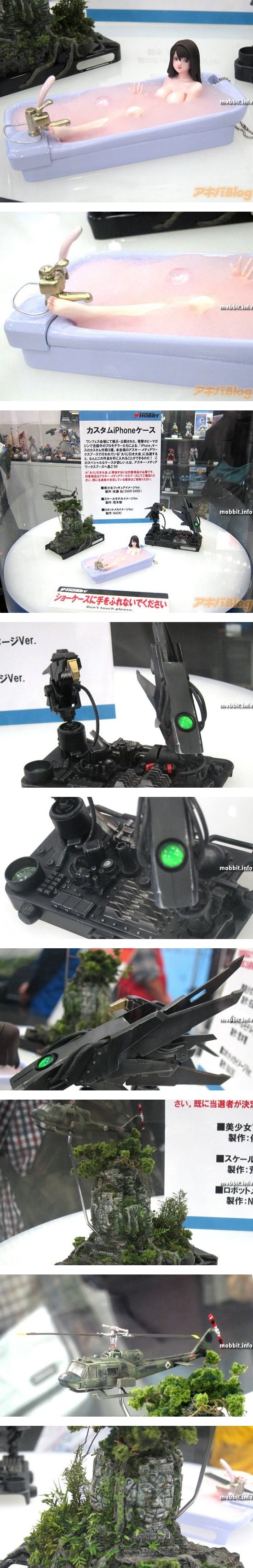 Может быть, ваш чехол для iPhone умеет снимать супер-фото, является мини-проектором или дополнительной батареей, но такого впечатления на окружающих (да и на вас самих), как любой из этих трех чехлов, он точно не производит. Удивительные аксессуары были представлены на фестивале ASCII в минувшие выходные. Сексапильная девушка в ванне, сложный роботизированный механизм, вертолет над каменной статуей – разве кто-нибудь признает в этих арт-объектах чехлы для телефона? Все это штучные вещи и, пожалуй, если вы захотите приобрести их, они обойдутся вам в кругленькую сумму.