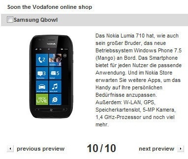 Элегантные и симпатичные смартфоны Nokia Lumia 710 и Samsung Omnia W очень скоро появятся в распоряжении компании Vodafone Германия, по крайней мере, так утверждает сам ретейлер.