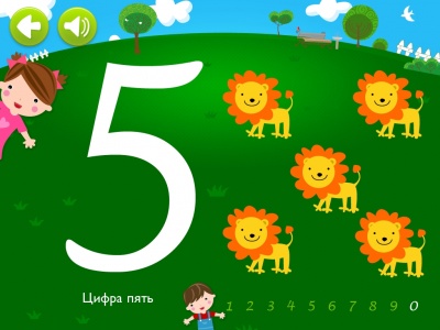 Простой и понятный интерфейс позволит вашему малышу пользоваться программой самостоятельно. Каждая цифра сопровождается яркой, красочной картинкой. ![]() ![]()