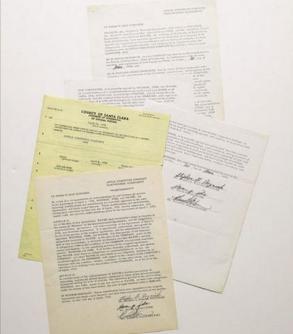 Учредительные документы Apple проданы за $1,6 миллионаВ апреле 1976 года Стив Джобс, Стив Возняк и Рон Уэйн подписали соглашение об основании компании Apple Computer. Интересно, что всего через 11 дней после основания Apple Рон Уэйн вышел из числа акционеров компании и продал принадлежащие ему 10% Apple своим партнерам. Причем сделал он это всего за $800, тогда как сейчас его доля оценивалась бы в $36 миллиардов. ![]()