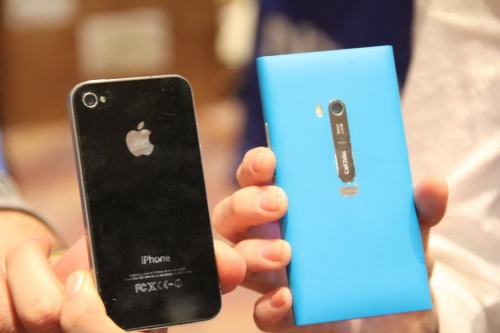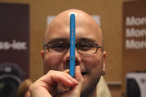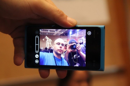 Несколько слов о главных особенностях Lumia 900. В нем применяется 4,3” сенсорный дисплей AMOLED с разрешением 800 х 480 точек, матрицей RGB (вместо PenTile у Lumia 800), плотностью пикселей 217 ppi (аналогично Samsung Galaxy S 2) и глубоким черным цветом благодаря технологии ClearBlack. Панель закрыта плоским стеклом Gorilla glass. Новый Lumia 900 так же как Lumia 800 и N9 поддерживает microSIM, а его 8-Мп камера ничем не отличается от камер этих двух устройств: широкоугольная 28-мм оптика Carl Zeiss с диафрагмой f/2.2, функцией записи HD-видео, двойной LED-вспышкой и автофокусом. Имеется фронтальная камера с диафрагмой f/2.4 и модем LTE.