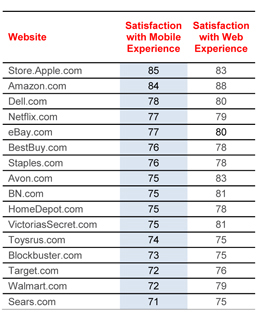 Аналитическая компания ForeSee провела исследование аудитории в три тысячи человек, регулярно совершающих покупки в интернет-магазинах 40 самых крупных ритейлеров США. Первое место заняла Apple с наиболее высоким процентом респондентов, удовлетворённых качеством обслуживания — 85%. Вторую строчку взяла Amazon с 84%. На третьем месте расположилась Dell с 78 процентами, а Netflix и eBay разделили четвёртое место с 77%.