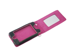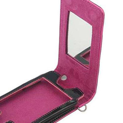 К таким, в частности, относится новый раскладывающийся футляр из кожи для iPhone. Очевидно, для девушек. Внутренняя поверхность футляра – розового цвета, а завершает картину зеркальце.