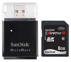 Карты памяти на 8 Гб!Компания SanDisk анонсировала свои новый карты памяти формата SD - SanDisk Extreme III. Объем SanDisk Extreme III - 8 Гб! Построены карты таких объемов на сравнительно новой технологии SD High Capacity. Такая карта поступит в продажу уже совсем скоро по предварительной цене в $180 (вместе с USB-прибором для ее чтения). Также будет доступна 4 Гб версия за 40 долларов!