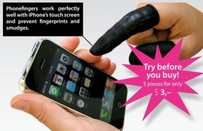 Phone Fingers — для поддержания чистоты экранаНе хотите, чтобы на экране Вашего iPhone оставались отпечатки пальцев? Тогда этот аксессуар для Вас. Называется он Phone Fingers и призван сохранять экран устройства в чистоте. Аксессуар выпускается в четырех размерах, а весь комплект Phone Fingers можно приобрести всего за 10 долларов.