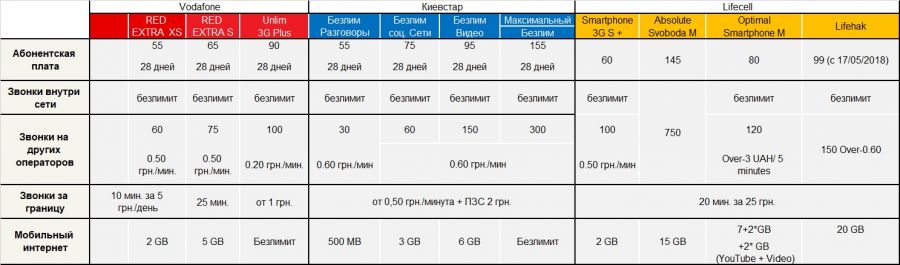 4G в Украине: у кого из операторов самые доступные тарифы?Приход в Украину 4G – это не один и даже не два шага на пути к развитию нашей страны. Будем считать это прыжком выше головы для государства, которое позаботилось о частотах, и упорством мобильных операторов, которые ежедневно поддерживали актуальность данного вопроса. 4G во всем мире – это новые сервисы и ускорение работы уже существующих, проникновение быстрого мобильного интернета в новые локации, производства и сферу услуг. Уверен, посетители нашего портала уже смогли оценить скорость и качество покрытия 4G у Киевстар, Vodafone и Lifecell. Делать выводы, основываясь на картах, еще рано. Дадим время операторам на настройку и обновление оборудования, как это было при запуске 3G. Напомню, тогда, в мае 2016 года, нами была подготовлена статья на основе собственных замеров покрытия в населенных пунктах Киевской области. Очевидно, что покупка лицензии и инвестиции в новую технику – это наиболее явные затраты, которые были и остаются у мобильных операторов. Кто из них хочет быстрее всех окупить вложенные средства и заработать на абонентах? Smartphone.ua предлагает разобраться в этом на основе тарифных планов, информация о которых была доступна 14.05.2018 на официальных сайтах компаний (скриншоты внизу статьи).