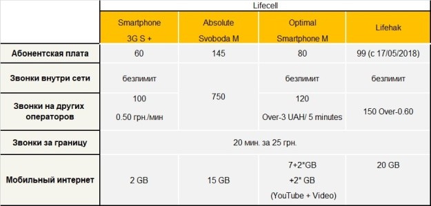 60 грн - минимум, который нужно будет заплатить lifecell за пользование тарифным планом с 2 ГБ данных. Это доступнее, чем у Киевстар, но дороже на 5 грн, чем у Vodafone. Отдельно предлагаю рассмотреть безлимитные тарифные планы, которые не ограничивают клиентов в объеме потребляемых данных. У Vodafone «Unlim 3G Plus» стоит 90 грн, у Киевстар "Максимальный Безлим" обойдется в 155 грн, а у Lifecell полного безлимита не нашлось, но можно купить тариф “Лайфхак” за 89 грн (с 17/05/2018 стоимость повысится до 99 грн) с 20 ГБ. Ну и кто у нас самый дорогой? Сводная таблица подтверждает то, что больше всего, за примерно одинаковый набор услуг, платят абоненты Киевстар. У кого самые доступные цены? По моему мнению, у Vodafone. У кого самые разнообразные тарифные планы? У Lifecell. Считаю это нужно отметить, ведь у них есть даже конфигуратор. Напоследок, в качестве рекомендации скажу, что для тех, кто начинает активно использовать интернет в своем смартфоне, оптимально выбирать между Vodafone RED EXTRA S за 65 грн или lifecell Smartphone 3G S+ за 60 грн. Эти тарифы дают 5 ГБ (у Vodafone) или 2 ГБ (у Lifecell), в то время как Киевстар просит целых 75 грн за «Безлим Соцсети» с 3 ГБ трафика. Андрей Лазаускас, для Smartphone.ua Джерело: SmartPhone.ua Обговорення новиниІрина: Відмінна стаття! Як користувач послуг Vodafone RED EXTRA S і водночас Київстар, можу підтвердити пріорітети Vodafone. Втім є один момент, наявність покриття!!! Як житель м. Запоріжжя, пересуваючись по центральному проспекту міста, спостерігаю від E до H, G, 3G, 4G. Відповідно, запитання: за що платимо?) Київстар залишив за собою ще ігри з виїздом за межі регіону, і відповідно, припинення дії тарифу. Тема розкрита доступно, а вибір - за нами! Lenkis: Качество интернета стандарта 4G в Украине пока оставляет желать лучшего. Так бежали за 4G, что и 3G где-то потеряли. Я абонент lifecell и пока лучше варианта для себя на нашем рынке не вижу. Тем более, что существенной разницы в стоимости предоставляемых украинскими операторами услуг, на мой взгляд, нет. Олександр: Я абонент Київстар але напевне перейду на Life тариф Лайфхак: - 20 ГБ + використані ГБ в попередньому 30-денному пакеті послуг Інтернету. (Використав наприклад 10Гб в наступному місяці 20+10= 30 Гб, використав 5 - значить 20+5=25 Гб) -Знижка 10 грн! При повторному замовленні 30-денного пакету послуг до закінчення строку дії попереднього пакету. Тобто наступний місяць буде коштувати не 99 грн, а 89 грн. Як на мене, якщо ці умови будуть діяти - це оптимальний пакет для смартфону. Для звичайного телефону Київстар підняв тариф з 35 грн до 55 грн. В Лайф є тарифний план "Пільговий" - 25 грн. Якщо вони не змінять ціну за цим тарифом то конкурентів по тарифам для власників звичайних телефонів важко знайти. Щодо Vodafone то я ще не дивися досконало їхні тарифи, бо більшість знайомих користуються Київстар чи Лайф. Головне це покриття та якість сигналу оператора. Тарас ЛАЙФХАК буде тепер тільки по 99 грн, але за поповнення швидше 30ти днів отримаєм +30 хв розмов на інші опер. та +30 SMS! Богдан: Новость о том, что в Украине скоро появиться 4G, была ожидаемой и долгожданной. Но увы, как всегда много слов, рекламы, обсуждений, а по факту получили недоготовленное блюдо. Во всем смс рассылках «обратитесь в ближайший магазин вашего оператора, и обменяйте sim карту для получения доступа к 4G», пыль в глаза, так как описанные и предлагаемые возможности на самом деле только маркетинг, по факту имеет не полное покрытие по Украи