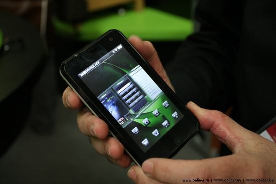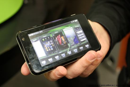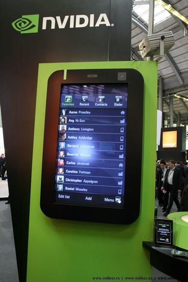LIVE from Barcelona: стенд NvidiaNvidia на выставке мобильных технологий показала новый процессор для мобильных телефонов и сопутствующий гаджет. Представители компании говорят, что прототип прекрасно выдерживает испытание популярной игрой Quake 3.