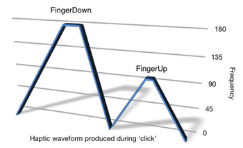 Малколм Холл (Malcolm Hall) и Ева Хогган (Eve Hoggan) создали клавиатуру для iPhone с обратной тактильной связью. Если быть честным, что правильнее ее стоит назвать псевдо-тактильной, так как при нажатии на кнопку электронной клавиатуры вибрирует не участок под пальцем, а сам iPhone. Изображение кнопки при нажатии, также начинает дребезжать, чтобы продемонстрировать, что взаимодействие уже произошло. Различаются два вида вибраций, которые называются «палец поднят», «палец опущен».