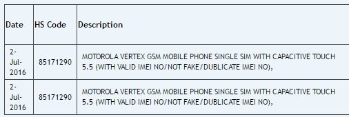 5.5-дюймовый Moto Z Play появился в базе данных ZaubaВ базе данных индийского логистического веб-сайта Zauba был замечен новый смартфон Moto от Lenovo - Moto Z Play под кодовым названием "Vertex". Фрагмент документа информирует о том, что тестовый экземпляр устройства прибыл на тестирование еще 2 июля, оснащен дисплеем диагональю 5.5 дюймов и лишь одним слотом для SIM-карт.