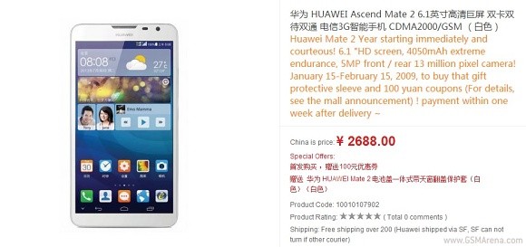 6.1-дюймовый Huawei Ascend Mate 2 получил ценник в $445Смартфон Huawei Ascend Mate 2, анонс которого состоялся на выставке электроники CES 2014, поступил в продажу на официальном интернет-сайте производителя с ценником в $445.