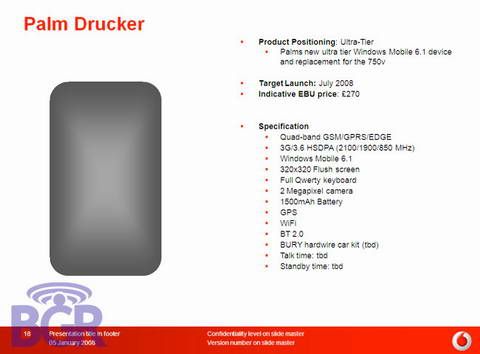 Palm Skywriter: первые данные о смартфоне с QWERTYКак сообщает wmexperts.com, компания Palm разрабатывает не только смартфон Treo 800w (рабочее название Zeppelin), но и телефон Skywriter, который также будет работать под управлением Windows Mobile 6.1 Standard. Ранее в Сети всплыла карта релизов Vodaphone, в которой указан Palm Drucker. Предположительно, это и есть Palm Skywriter. По другим данным, Palm Zeppelin и Palm Skywriter создаются на базе одного устройства – первый будет рассчитан на использование в сетях CDMA, а второй – в сетях GSM и WCDMA. То, что анонс и начало продаж Palm Zeppelin и Palm Skywriter назначены на один день, 22 июля, также свидетельствует о правильности последнего предположения.