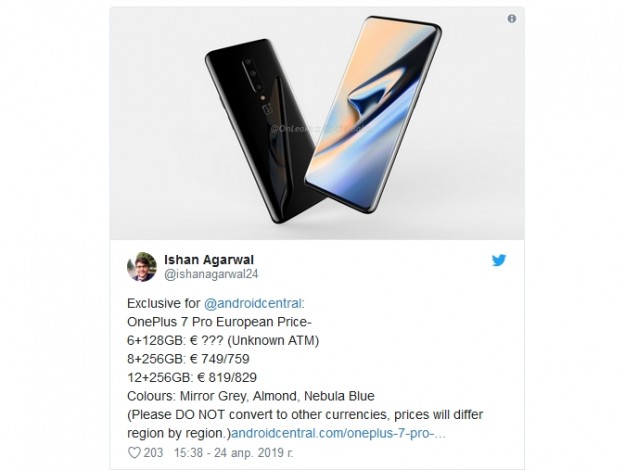 700 евро – это только начало: опубликованы новые подробности о стоимости смартфона OnePlus 7 ProСегодня утром мы уже писали о возможной стоимости смартфона OnePlus 7 Pro – предполагалось, что цена базовой версии составит $745. Что ж, на деле аппарат будет еще дороже.