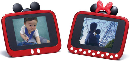 У iRiver есть несколько продуктов на тему Микки-Мауса, но вот парных фоторамок у производителя еще не было. Это даже, скорее, сувениры, чем функциональные рамки – 3,5 дюймовый экран разрешением 320 x 240 не позволит развернуться с просмотром высококачественных снимков, зато фотоминиатюр в 1 ГБ памяти поместится предостаточно. Устройствами поддерживаются форматы Jpeg и MPEG-4, есть даже выход для наушников.