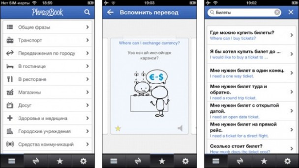 ABBYY PhraseBooks – новые разговорники для устройств AppleABBYY объявляет о выходе мобильного разговорника ABBYY PhraseBooks для Apple iOS, который поможет путешественникам легко объясняться на английском, испанском, итальянском, немецком и французском языках, заучивать популярные фразы и уверенно чувствовать себя за границей. Контент для приложения составили профессиональные лексикографы компании ABBYY с учетом современных языковых реалий. Все слова и фразы в программе можно легко прочитать – их произношение написано на русском языке. Фразы озвучены носителями языка и сгруппированы по 11 распространенным в путешествиях темам: «Досуг», «Здоровье», «Ресторан», «Гостиница», «Транспорт» и другие. В каждой из них есть специальный раздел «Полезные слова», в который включены самые популярные слова и фразы по данной теме.