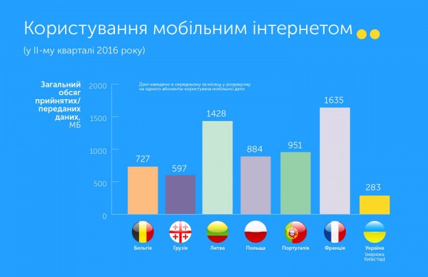 В то же время, объемы потребления мобильного дата трафика в Украине пока еще ниже, чем в странах ЕС. Так, согласно данных GSMA Intelligence, украинские пользователи мобильной связи потребляют в среднем около 300 Мб мобильного интернета в месяц, тогда как в странах ЕС – от 1000 Мб и выше. Джерело: SmartPhone.ua Обговорення новиниAlex: Ну да 300 мб, а скольки вы хотите, когда 3G еще на костилях в Украине.. Попередні новини