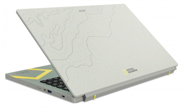 «Первое, что бросается в глаза — это несколько диагональных линий, пересекающих примерно половину верхней крышки. Они представляют собой небольшой фрагмент топографической карты и делят поверхность ноутбука на сушу и море, напоминая о влиянии глобального потепления на повышение уровня моря. При открытии ноутбука в глаза сразу бросается ставшая культовой, желтая рамка National Geographic. На пробеле надпись: For Planet Earth (Ради планеты Земля)», — отмечает Acer.