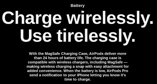 Сообщается, что все новые AirPods Pro будут поставляться в кейсе с MagSafe вместо прежнего, который поддерживает лишь обычную беспроводную зарядку. Apple обновила информацию на своём сайте, чтобы отразить это нововведение. К сожалению, на данный момент зарядный кейс с поддержкой MagSafe не доступен для AirPods Pro в качестве отдельного аксессуара, так что тем, кто уже имеет эти наушники, придётся довольствоваться обыкновенной беспроводной зарядкой.