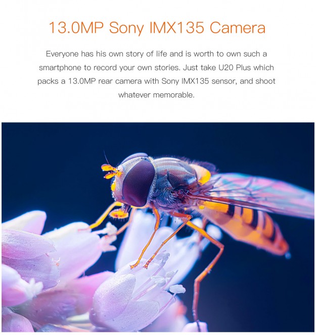Основная камера OUKITEL U20 plus имеет программную интерполяцию до 16Мп, автофокус и светодиодную вспышку. По своим возможностям, как сообщает производитель, она не уступает SLR-камерам. Среди прочих преимуществ модели: 5.5-дюймовый дисплей от SHARP из 2.5D-стекла с разрешением 1920х1080 точек, многофункциональный сканер отпечатков пальцев и достаточно емкий аккумулятор на 3300 мАч.