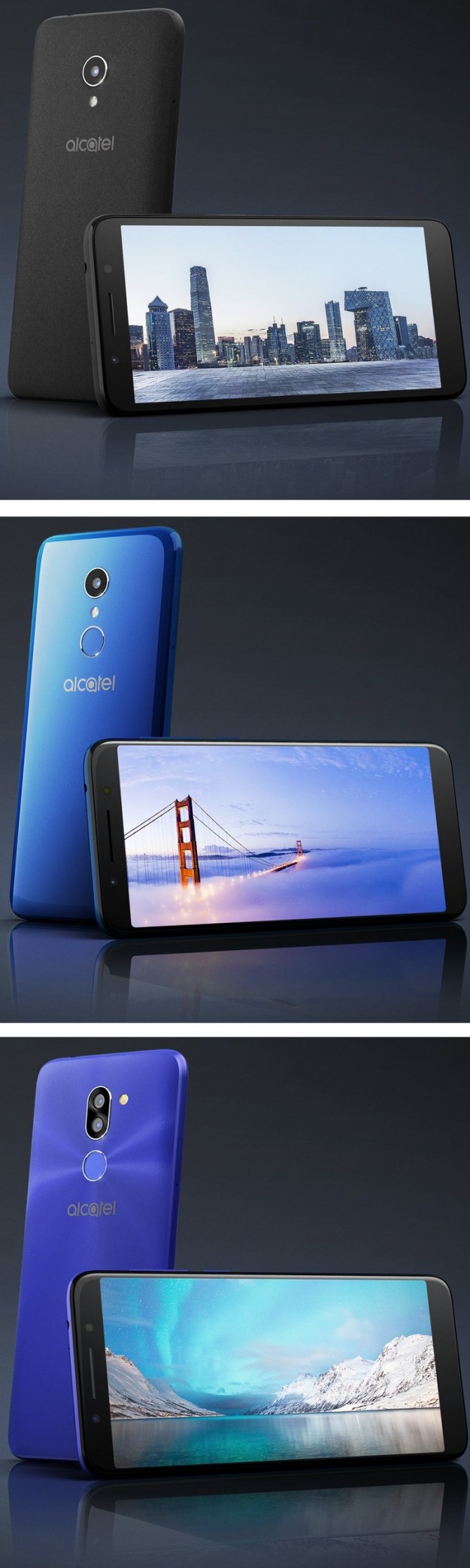 Alcatel 1x, 3 и 3x: характеристики и пресс-фотоИскатель утечек Эван Бласс продолжает публиковать пресс-фото смартфонов, анонс которых запланирован на MWC 2018. Вслед за флагманами Samsung и Sony перед ним не устояли бюджетные Alcatel – 1x, 3 и 3x. Стоило их фотографиям появиться в твиттере @evleaks, как их ретвитнул искатель утечек Зияд Таф (@ZyadAtef12). И не просто ретвитнул, а заодно расскзал характеристики устройств. Объединяют их только экраны с соотношением сторон 18:9, чипсеты MediaTek MT6739 и 5-Мп фронталки. Прочие параметры Alcatel 1x (сверху) включают 5,34" дисплей с разрешением 960х480 точек, 2 ГБ ОЗУ, 16 ГБ ПЗУ, 13-Мп камеру, аккумулятор на 2460 мАч и корпус размерами 147,5х70,6х9,15 мм и весом 130 г. Alcatel 3 (посередине) получит 5,5" экран HD+, 2 ГБ ОЗУ, 16 ГБ ПЗУ, 13-Мп камеру, батарею на 3000 мАч и корпус размерами 147,1х68,8х8,5 мм и весом 145 г. Наконец, Alcatel 3x (внизу) оснастят 5,7" дисплеем HD+, 3 ГБ оперативной и 32 ГБ встроенной памяти, двойной камерой 13 Мп + 5 Мп, аккумулятором на 3000 мАч. Размеры корпуса – 153,5х71,6х8,75 мм, вес – 150 г.