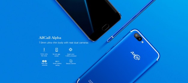 Обновленная версия AllCall Rio - Rio S, которая унаследовала лучшие черты дизайна от Rio. Но при этом у новинки обновлен 3D-изогнутый экран и панель из защитного стекла. Аппаратная часть состоит из 4-ядерного процессора Mediatek MT6737 Cortex-A53 1.3 ГГц, 2 ГБ оперативной памяти, 16 ГБ встроенной памяти, аккумулятора на 3200 мАч. В указанную дату трубка будет стоить 59.99 долларов США, но только для 20 первых покупателей! AllCall Alpha