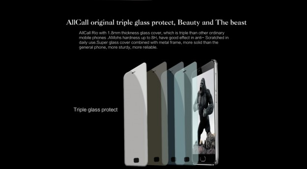 AllCall Rio доступен на предпродаже по цене $54.99 в количестве 999 единицСмартфон AllCall Rio снова попал в нашу новостную ленту, так как производитель выложил в сеть видео усиленной эксплуатации трубки. Производитель утверждает, что AllCall Rio, с толщиной защитного стекла 1,8 мм способен на многое. В видео, ссылка на которое опубликована ниже, видно, как экраном разбивают грецкий орех, забивают гвоздь, скребут по нему острыми предметами и испытывают высокими температурами. Помимо этого AllCall Rio бросают на пол с высоты 1,5 м и после всех 8-ми экспериментов он остается в рабочем состоянии. Во всем этом можно убедиться просмотрев видео: https://www.youtube.com/watch?v=HetrRE_iWTQ