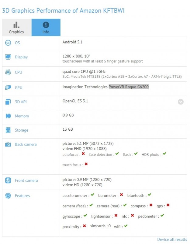 Amazon готовит к анонсу бюджетный 10-дюймовый планшет Kindle FireВ базе данных бенчмарка GFXBench был замечен не представленный еще официально 10-дюймовый планшет Amazon Kindle Fire.