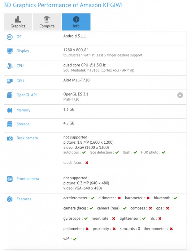 Amazon готовит к анонсу планшет Fire HD 8 нового поколенияКомпания Amazon готовит к анонсу новый планшет линейки Fire. По крайней мере, на это намекает информация, появившаяся в базе данных бенчмарка GFXBench.