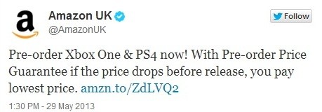 Amazon начала принимать предзаказы на Xbox One и PS4Представители компании Amazon заявили о том, что интернет-магазин начинает прием предварительных заявок на консоли Xbox One и PS4. Цена вопроса очень немаленькая - $900. Соответствующее объявление сегодня «засветилось» в официальном блоге магазина на твиттер.
