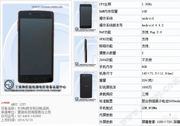 Amoi M1 — 4-ядерный смартфон-"долгожитель" с Android KitKatВ базе данных китайской сертификационной организации TENAA был замечен двухсимочный смартфон Amoi M1, который будет выделяется на фоне конкурентов очень емким аккумулятором.