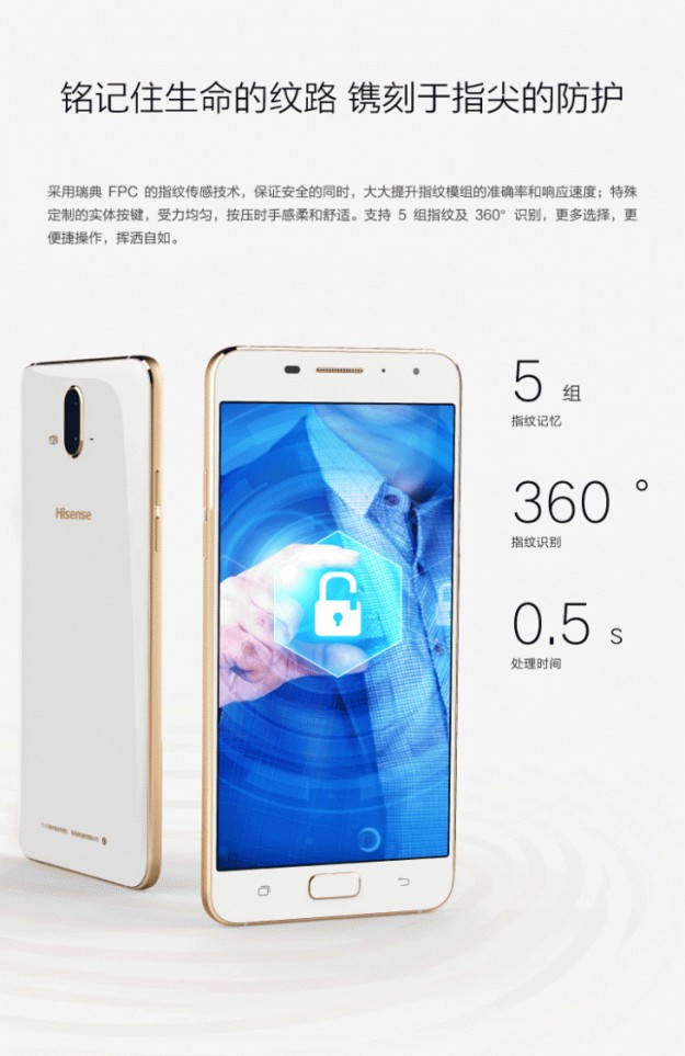 Hisense A1 получил также сканер отпечатков пальцев, 5Мп фронтальную камеру и аккумулятор на 3000 мАч с поддержкой технологии быстрой зарядки Quick Charge 2.0. Работает смартфон под управлением операционной системы Android 5.1 Lollipop.