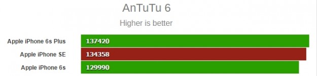 Стоит сказать, что модель с индексом SE оказалась значительно быстрее внешне похожей на нее iphone 5s. Последний в прошлом году в бенчмарке AnTuTu набрал порядка 49000 баллов, что было сравнимо с показателем модели 6 Plus, которая набрала лишь немного больше чем 50 тысяч баллов. Более производительная начинка позволила дебютанту этого года обогнать в синтетических тестах на производительность даже фаблеты Huawei Mate 8 и Note 5 от Самсунг, популярный Meizu Pro 5 и амбициозный Oneplus 2. Так что внешняя схожесть с пятым айфоном и небольшие габариты, как оказалось, скрываю под собой немалый запас производительности и вычислительных способностей, которых с лихвой хватит на ближайшие несколько лет даже для самых новых игр и мультимедийных приложений.