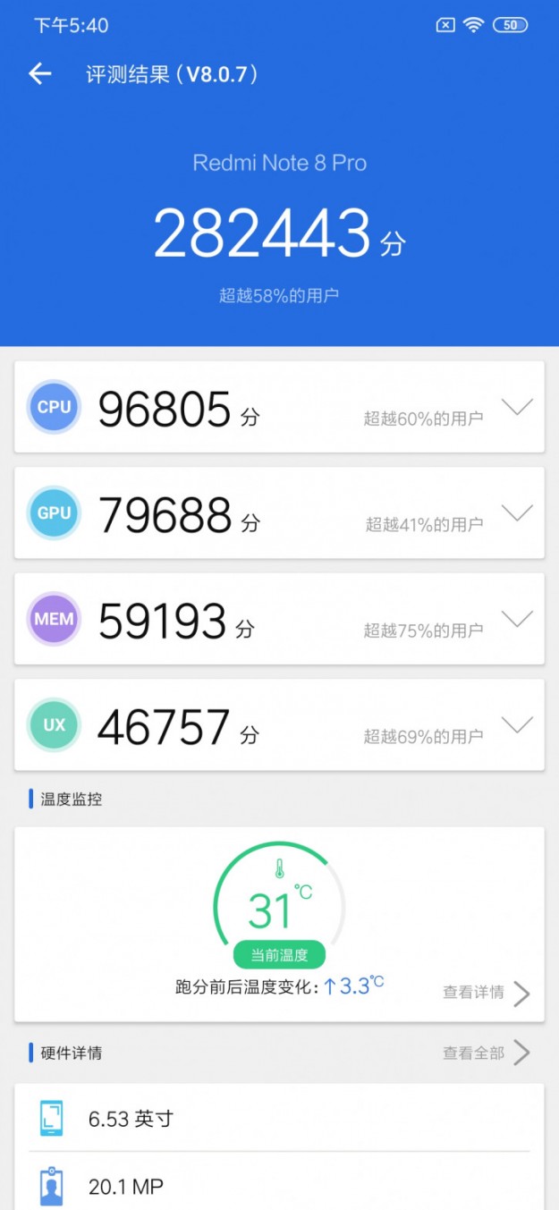 AnTuTu опубликовал результат MediaTek Helio G90T в Redmi Note 8 ProВчера состоялась презентация Redmi Note 8 Pro (все подробности, построенный на игровом чипсете MediaTek Helio G90T, ранее недоступном на рынке. Вскоре после этого популярный бенчмарк AnTuTu опубликовал результат прогона устройства в своих тестах. Испытание синтетикой проходило топовое издание на 8/128 ГБ за 1799 юаней ($199), а результат оказался на уровне около 283 000 попугаев. Из них почти 80 000 баллов пришлось на графический ускоритель Mali-G76 и около 97 000 попугаев на CPU.