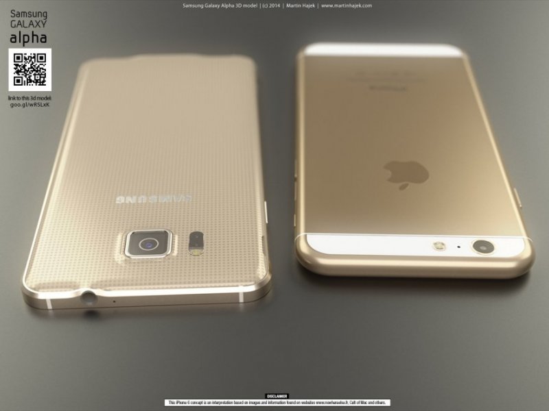 Apple iPhone 6 сравнили с флагманом Samsung Galaxy AlphaИзвестный дизайнер Мартину Хажеку представил общественности высококачественные рендеры, созданные на основании точных спецификаций не представленного еще официально 4.7-дюймового iPhone 6, на которых будущий флагман Apple "позирует" бок о бок со смартфоном Samsung Galaxy Alpha.