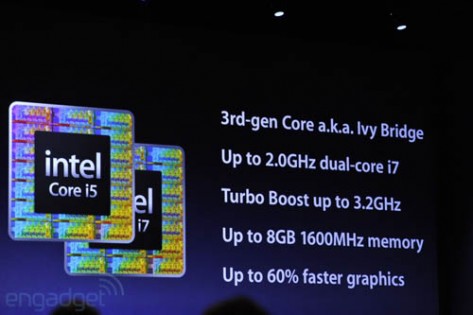 Сообщается, что новые MacBook Air получили процессора Ivy Bridge Core i7 последнего поколения с тактовой частотой до 2 ГГц, а встроенная FaceTime-камера теперь может снимать в формате 720р. Также известно, что в новых устройствах этой линейки будет установлено до 8 ГБ оперативной памяти, а объем накопителя составит до 512 ГБ.