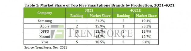 Ожидается, что выбится в лидеры Apple поможет как высокий спрос на iPhone в праздничный квартал, так и лучший чем у её конкурентов контроль над цепочкой поставок. TrendForce сообщает, что, несмотря на некоторые улучшения, экономическая неопределённость и дефицит компонентов продолжают сдерживать продажи смартфонов. Однако негативные факторы затронули Apple в гораздо меньшей степени, чем других производителей смартфонов. В третьем квартале компания представила четыре устройства серии iPhone 13. В том же третьем квартале объёмы производства iPhone выросли на 22,6 % по сравнению с предыдущим трёхмесячным периодом и достигли 51,5 миллиона единиц.
