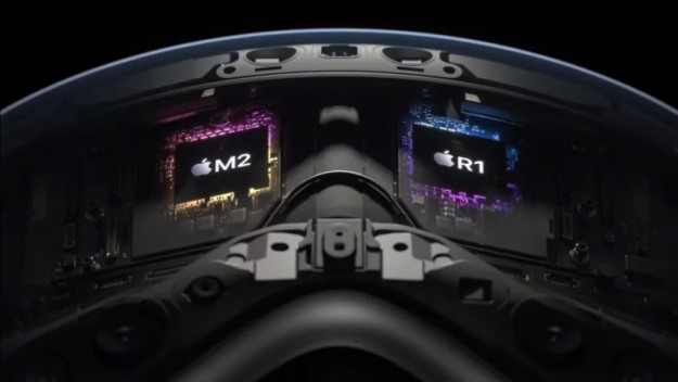 В устройстве применяются два процессора. Основным служит чип M2. Компанию ему составляет вспомогательный процессор R1, отвечающий за работу 12 камер, пяти сенсоров и шести микрофонов. Чип M2 отвечает за производительность Vision Pro, R1 — за функции погружения пользователя в AR или VR.