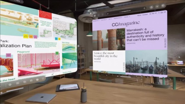 На виртуальный экран Vision Pro в разрешении 4K также можно выводить экран с Mac. Устройство поддерживает трекпад Magic Trackpad и клавиатуру Magic Keyboard. Иными словами, с Vision Pro можно использовать Bluetooth-аксессуары. Новинка также поддерживает специальную версию FaceTime, которая позволяет видеть цифровые версии вашего собеседника при звонках один на один. Новые собеседники добавляются на цифровой интерфейс в виде цифровых плавающих в воздухе аватаров.