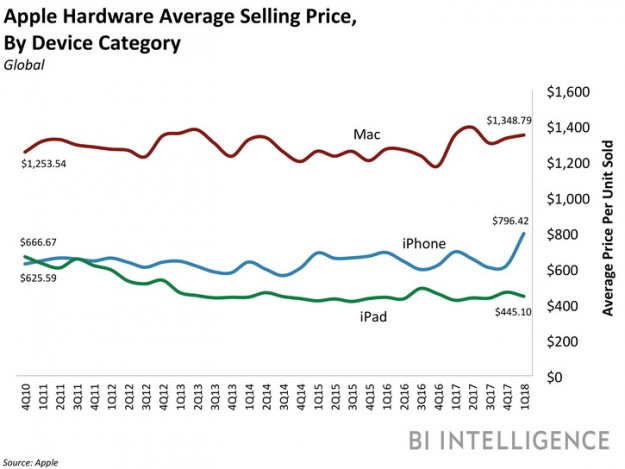 Как сообщает Business Insider со ссылкой на аналитиков UBS, компания из Купертино ведет работу над переформатированием своей ценовой политики, что может сделать iPhone X 2018 еще дороже предшественника. Суть теории состоит в том, что у Apple есть средняя цена смартфона в $800, которую она пересматривать не планирует. Модель включает масштабное расширение диапазона применения премиальных функций с параллельным расслоением сегментов более низкого ценового сегмента за счет моделей прошлых годов. Предполагается, что iPhone SE может упасть в цене до $300 уже осенью.
