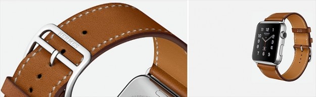 Для новых Apple Watch компания Hermes разработала три вида кожаных ремешков: Simple Tour, Double Tour и Manchette. Apple Watch с Simple Tour обойдутся покупателю в $1100. Из доступных расцветок: красный (Capucine), черный (Noir) и коричневый (Fauve). Ремешок Double Tour, который дважды оборачивается вокруг запястья, доступен в четырех цветах: синем (Bleu Jean), красном (Capucine), коричневом (Fauve) и сером(Etain). С ним ценник часов Apple возрастает до $1250.