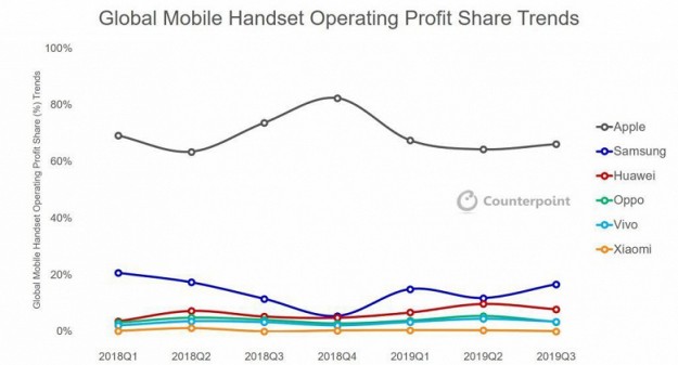 Общая мировая прибыль от продаж сотовых телефонов в третьем квартале 2019 года уменьшилась в годовом выражении на 11% и составила 12 млрд долларов. Это произошло из-за расширения ассортимента моделей среднего уровня и привело к падению доходов основных производителей смартфонов. В десятке ведущих брендов только Samsung и Huawei смогли увеличить свои доходы. Кроме того, цикл замены смартфонов премиум-класса удлинился, поскольку последние аппаратные новшества не смогли стать достаточной причиной для обновления. Такой вывод содержится в отчете аналитической компании Counterpoint.