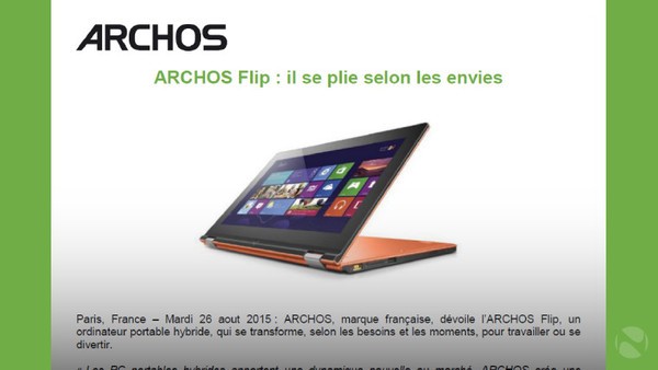 Archos Flip — ноутбук-трансформер на базе ОС Windows 10 за 249 евроКомпания Archos анонсировала ноутбук-трансформер Flip. Главная особенность новинки — откидывающийся на 360 градусов дисплей, превращающий ноутбук в планшет.