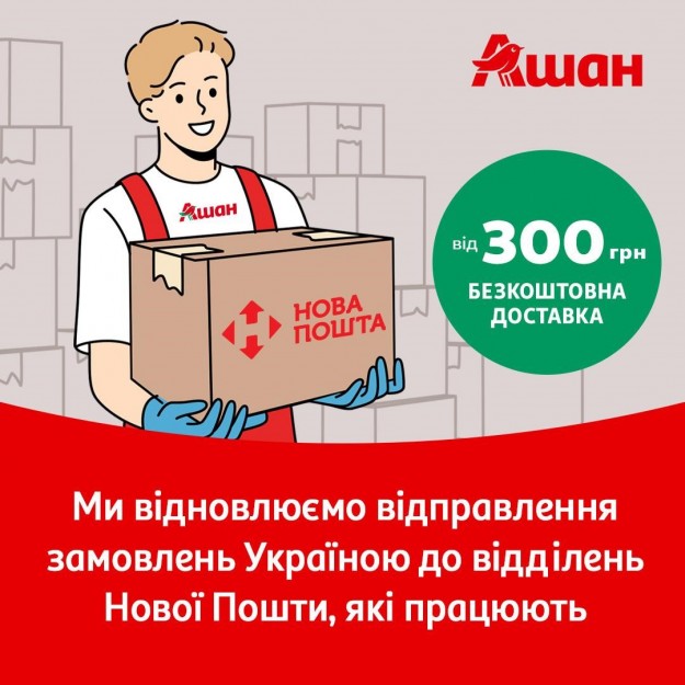 АШАН Україна відновив популярну онлайн-послугу у партнерстві з Новою ПоштоюГіпермаркети АШАН Україна продовжують активно працювати в Україні. Мережа також закуповує за кордоном продукти, яких на даний момент немає в Україні та надає можливість створювати онлайн-замовлення товарів. Доставку здійснює “Нова Пошта”. При замовленні товарів на суму від 300 грн, покупцям безкоштовно доставляють їх у відділення або поштомат “Нової Пошти”. Час доставки залежить від регіону і може тривати близько 3-4 днів. Від кожного замовлення покупець отримує кешбек на бонусну карту.