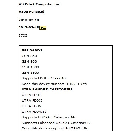ASUS готовит 3G-версию планшета ASUS FonepadВ Сети появилась информация о том, что тайваньская корпорация ASUS работает над созданием 3G-версии планшета ASUS Fonepad. Первые данные об этом были замечены на сайте Global Certification Forum. Отмеченный индекс модели ASUS ME371MG.